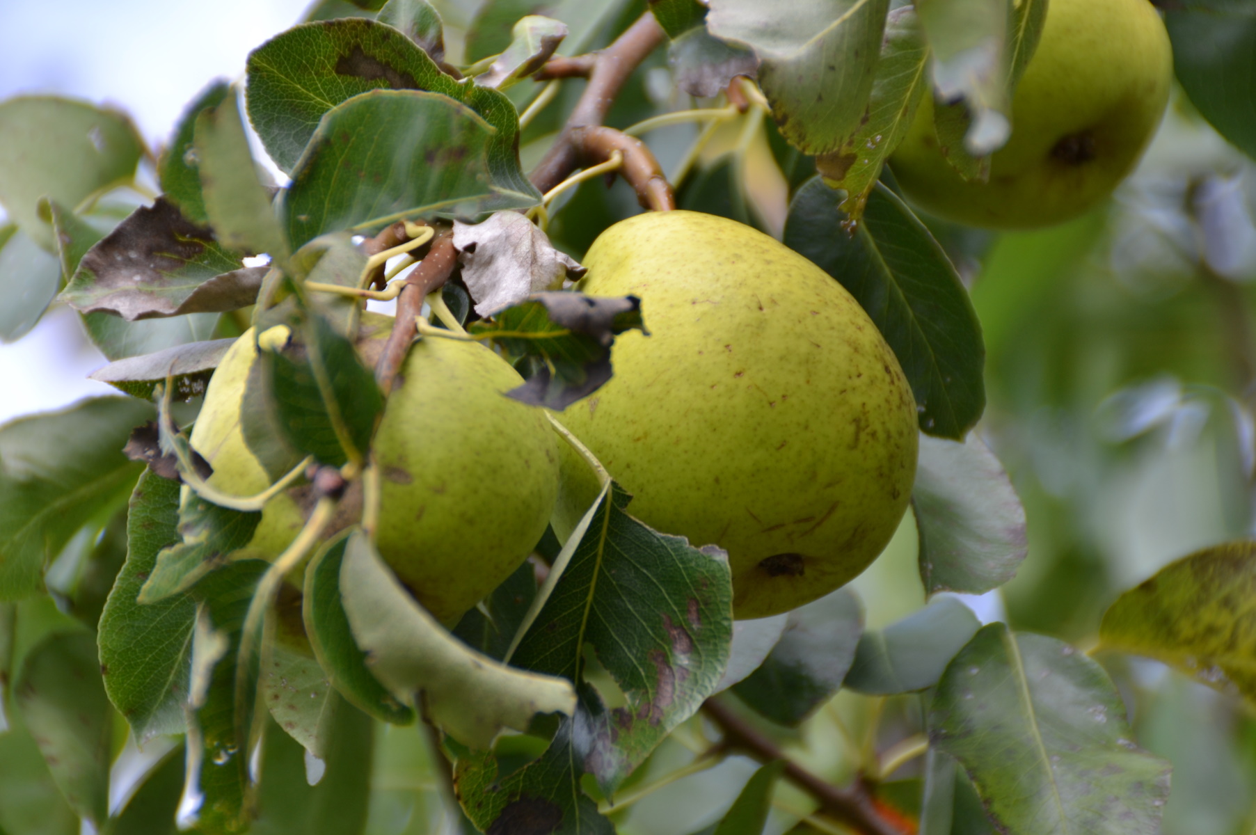 Pour les poiriers, on procède de la même manière avec comme intermédiaire William Duchesse. Certains poiriers sont aussi greffés directement en tête sur des poiriers sauvages (On en trouve communément dans la nature).